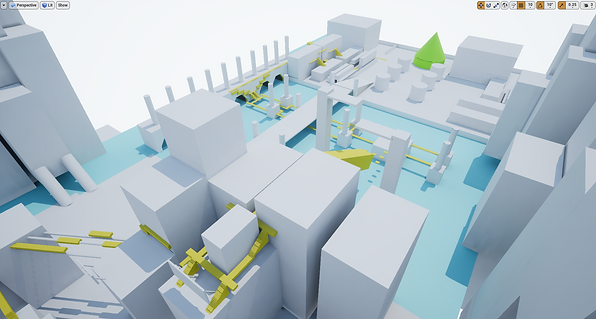 Now that I have the initial Whitebox of the city made and the Player's Golden Path mapped out I can start to add mechanics for that extra challenge, as well as test what works and most importantly see if it is FUN to play!